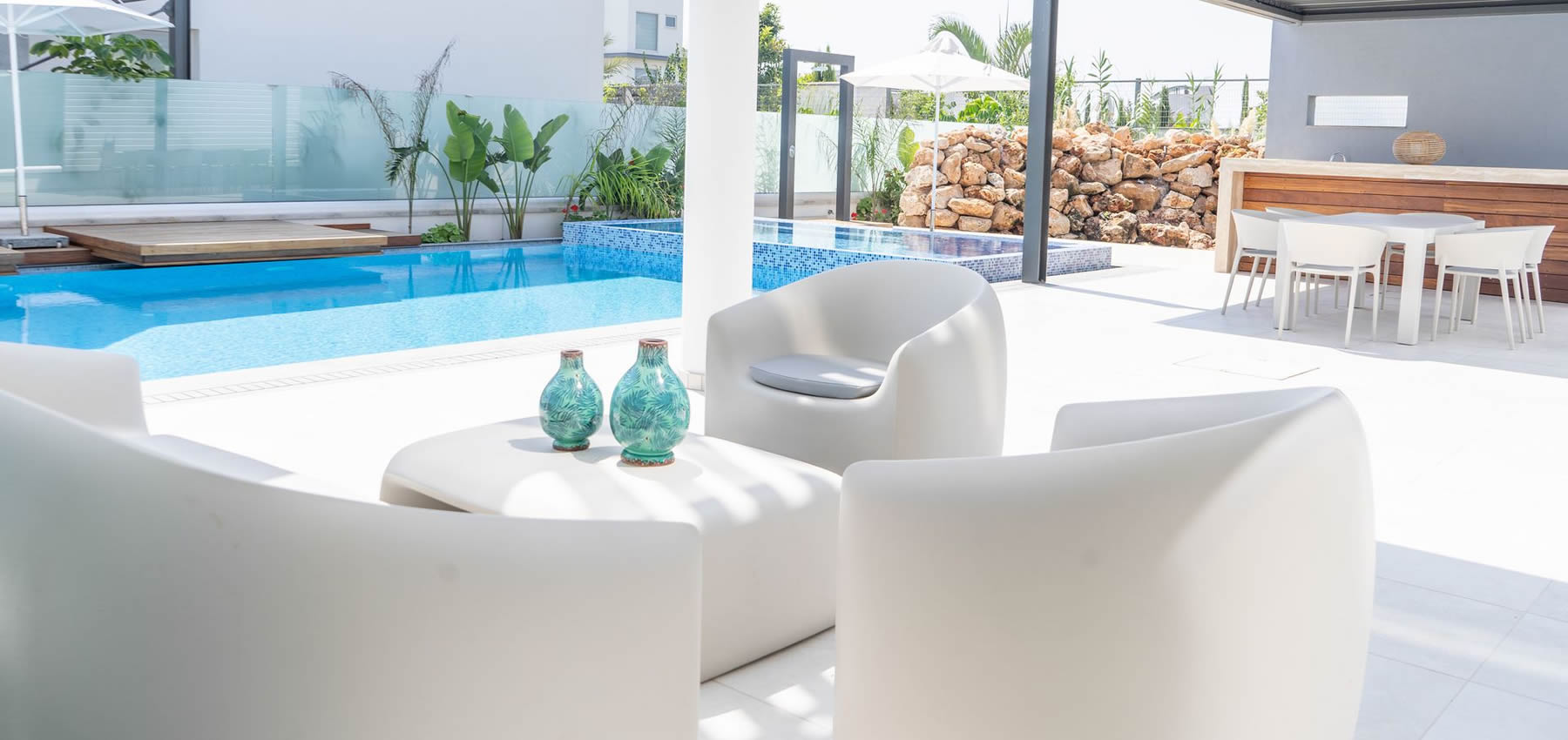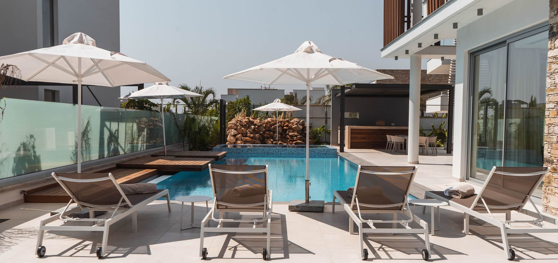 Fortuna Seaview Villa, only 135m from the Mediterranean Sea on the southeastern coast of Cyprus, just outside the summer resort of Ayia Napa, presents an extraordinary proposition: This 5-bedroom villa within the exclusive Vivo Mare Beachfront Villas development was designed for luxury holidays shared with your family and friends.