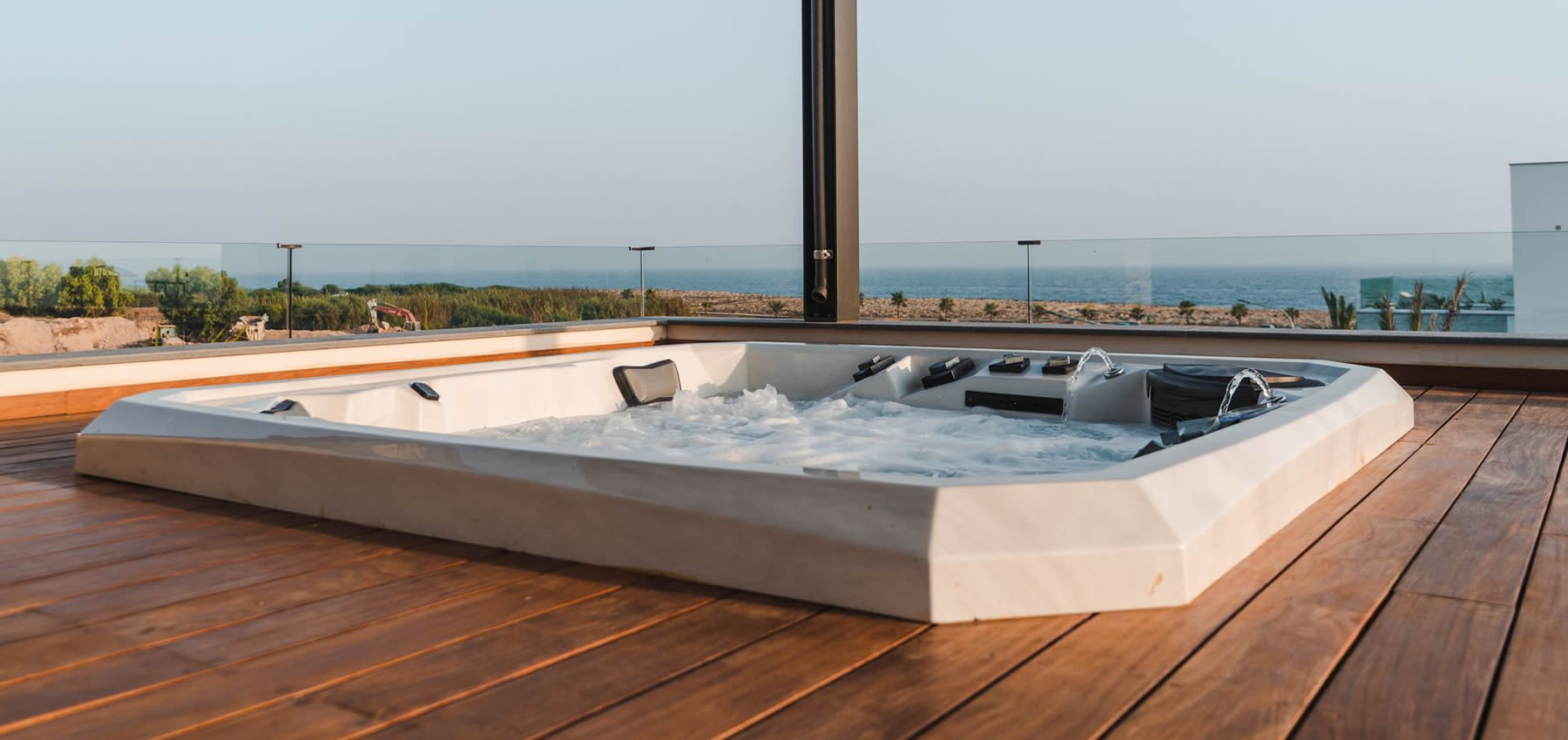 Here on the outskirts of Ayia Napa, life is leisurely and leisure time is spent outdoors, where a sparkling pool and jacuzzi, sundeck, lounge area, and BBQ corner await. For an enchanting sea view from above, retreat to the rooftop terrace with hot tub, where a magical sunset gives way to starry skies.