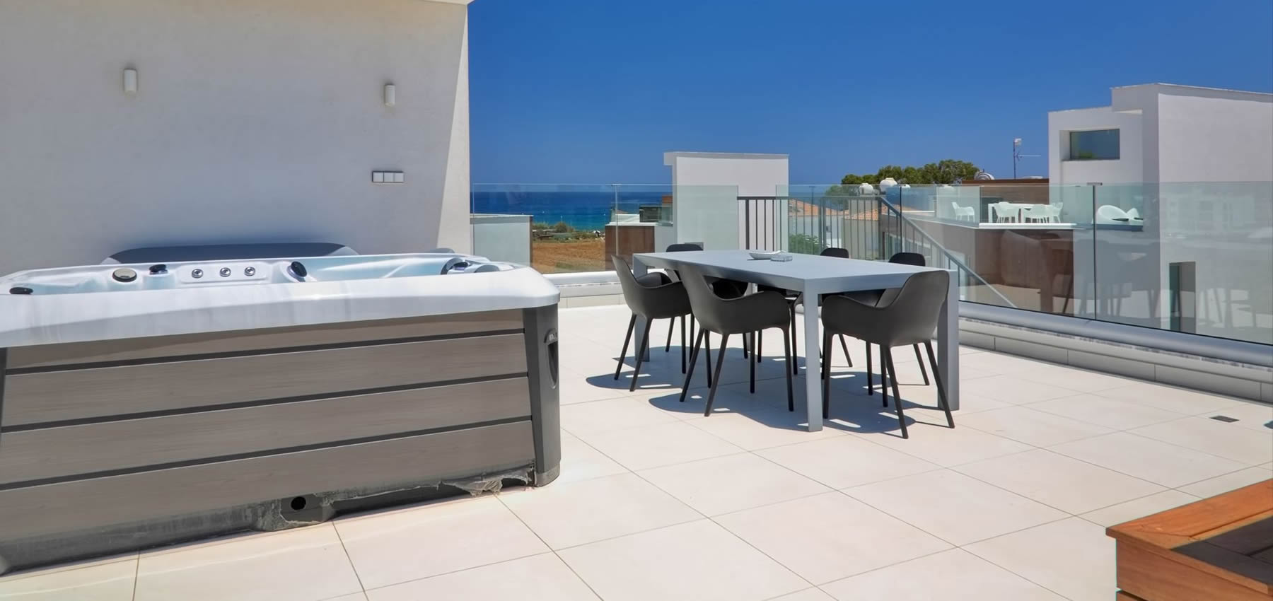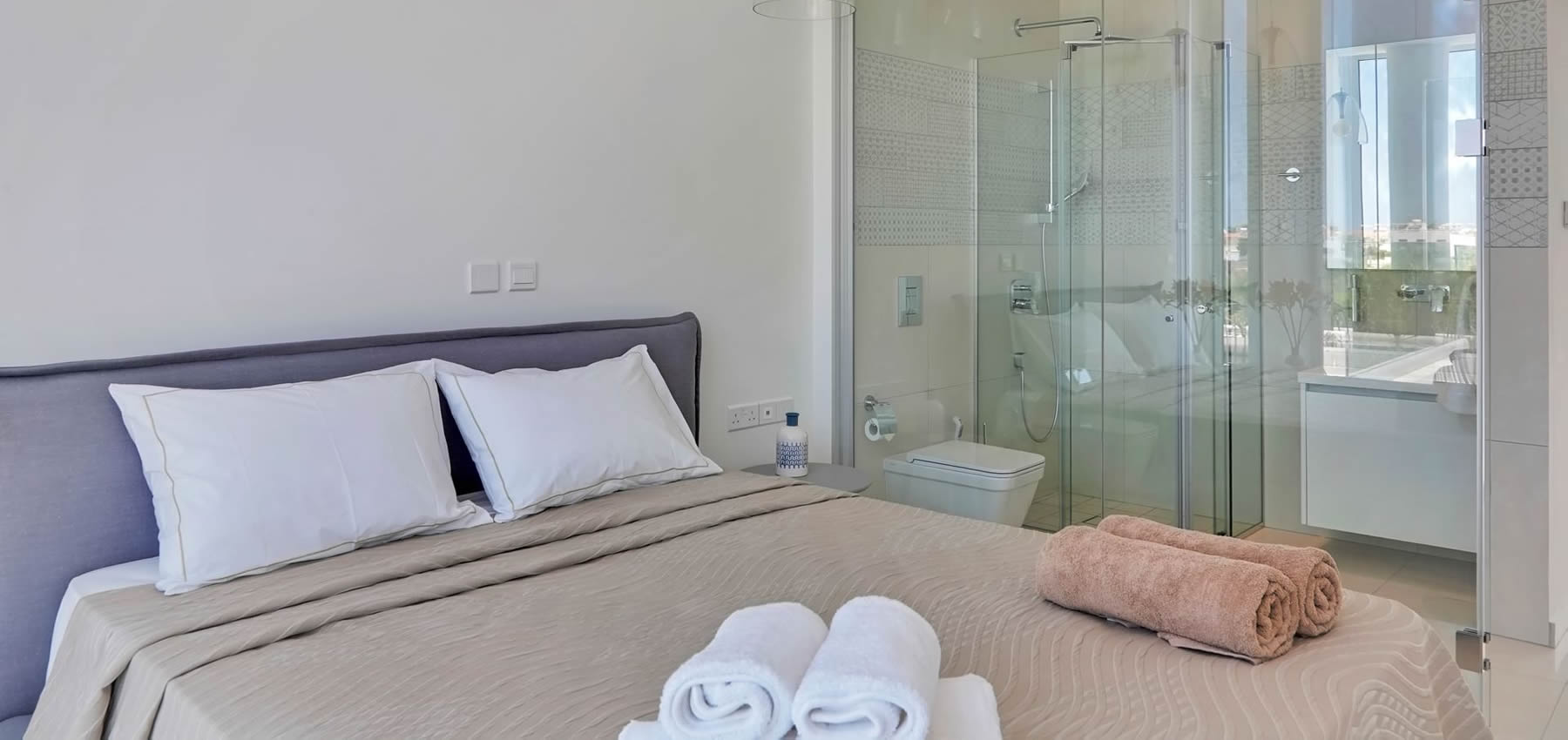 What’s in the vicinity? The beautiful, EU Blue Flag sandy beach with sunbathing facilities (at a charge) are 150m away, shops and restaurants are also within walking distance, about 600-700m from the development. For more variety and vibrant summer resort entertainment, it’s a short 5km drive to Protaras, and a just a bit further to the hot spots of Ayia Napa. In the cooler seasons the cycling paths and hiking trails in and around the unspoiled nature reserve of Cape Greco are irresistible.